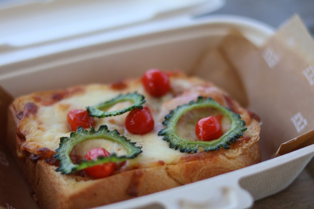 続いて、焼き上がったばかりの「ゴーヤピザ」に手を伸ばします。もっちりとした弾力のある生地の上に、たっぷりのチーズと鮮やかな緑色をしたゴーヤの薄切り。熱々のチーズの濃厚なコクのあとに、ゴーヤ特有の爽やかな苦味が追いかけてきて、味の輪郭をきゅっと引き締めてくれます。こうした土地の食材が、結果的に身体の求める栄養を満たしているという“ゆるやかな食の均衡”は、何よりの贅沢かもしれません。