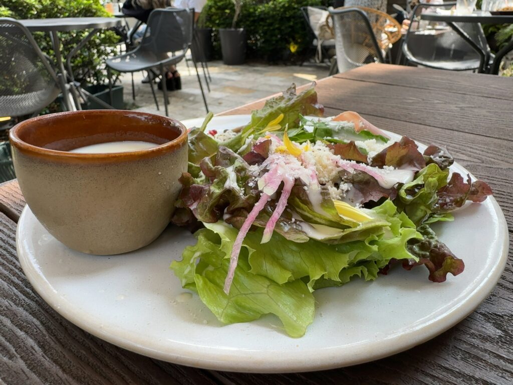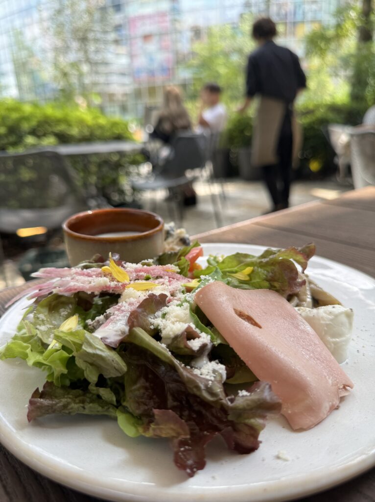 六本木ヒルズにあり、毛利庭園に近接、東京タワーも視界にはいるテラス席は、東京のベストロケーションのひとつと感じます。そこでいただく休日ランチは、季節を感じる前菜もりあわせに、ピザ、パスタ、メインのいずれか1品に、コーヒー・紅茶・ハーブティーのドリンクバーもついて、なんと2100円(税別)から。
