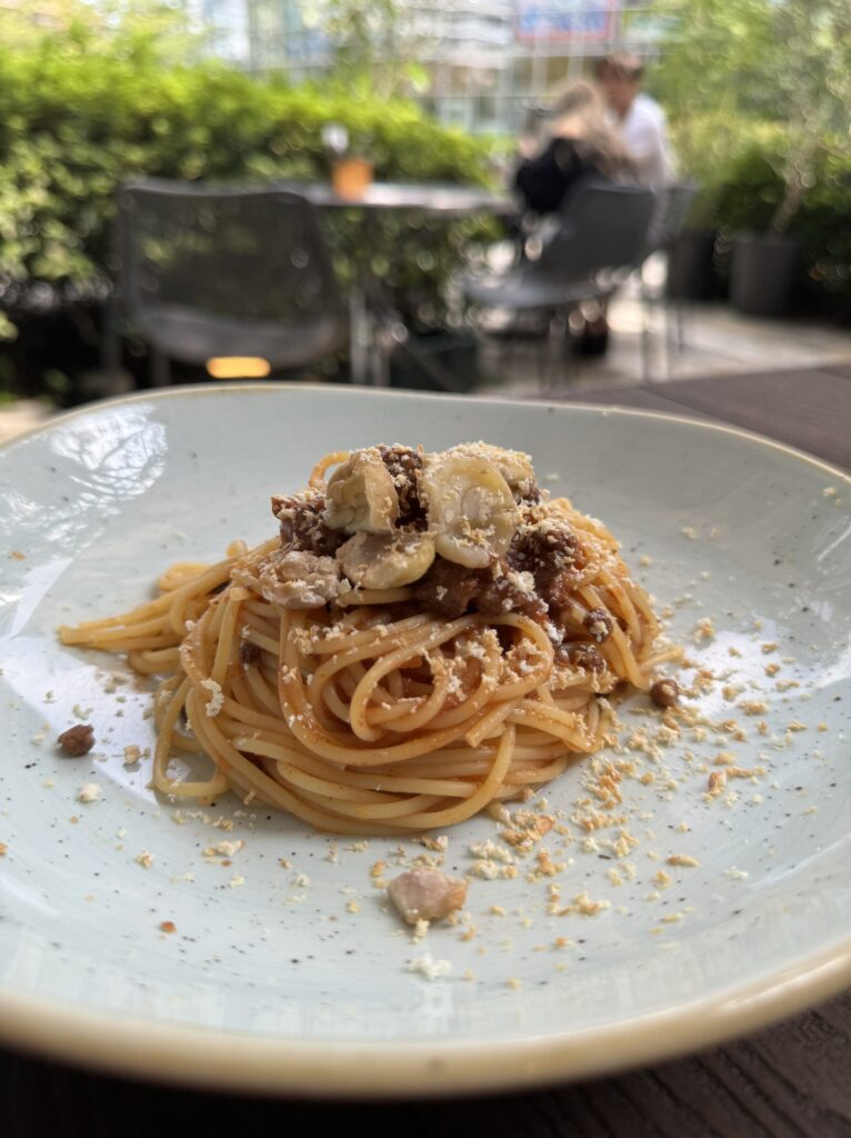 前菜は、ケールなど栄養価の高いサラダに、スモークサーモン、ハム、モッツァレラチーズ、キノコのマリネが盛られ、サツマイモの冷静ミニスープが添えられた、季節を感じる満足感たっぷりの一皿。メインは、「牛肉100%ボロネーゼソーススパゲティ 栗と燻製リコッタチーズ」と「アサリと椎茸のアーリオオーリオスパゲティ イタリア産カラスミと青柚子の香り」のパスタ、「6 種チーズのピッツァ 6フォルマッジ ( アカシアの蜂蜜つき )」のいずれも、牛肉、魚介から栗、キノコまで、こだわりの旬素材で美味しかったです。