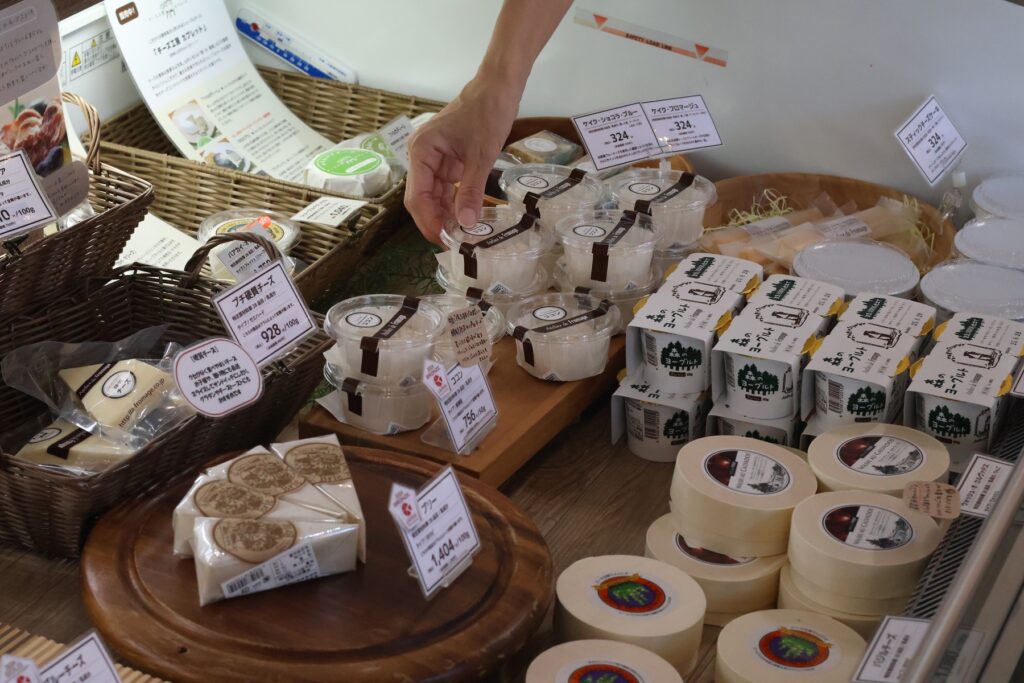 After the meal, craving something sweet, we indulged in rich cheese soft-serve ice cream at “Atelier de Fromage Karuizawa Store“. The cheese flavor spreading in our mouths was truly exquisite. As a souvenir, we got “Cocon,” a rare yeast-ripened cheese made from cow’s milk in Japan. Strolling through Old Karuizawa Ginza, we were drawn by the fragrant smell of bread. We bought a seasonal bread assortment at “Boulangerie Asanoya Karuizawa Kyudo Honten“. We also picked up some wine made from local Berry A grapes, adding to our anticipation for enjoying it at the inn.