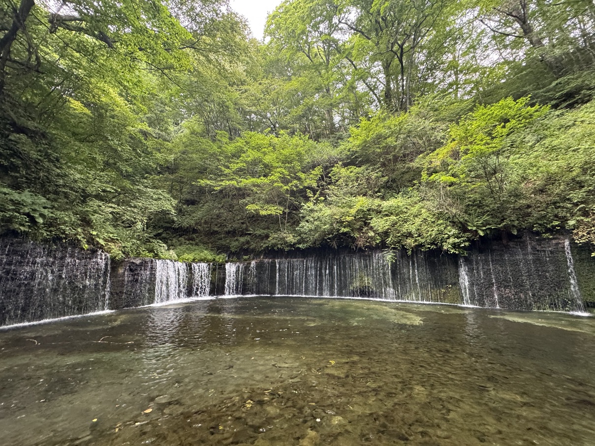 Leaving Old Karuizawa behind, we headed to “Shiraito Falls“. The numerous strands of water falling like white threads were so calming to watch. We felt completely refreshed, soaking in plenty of negative ions.