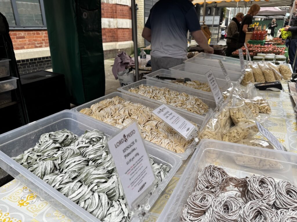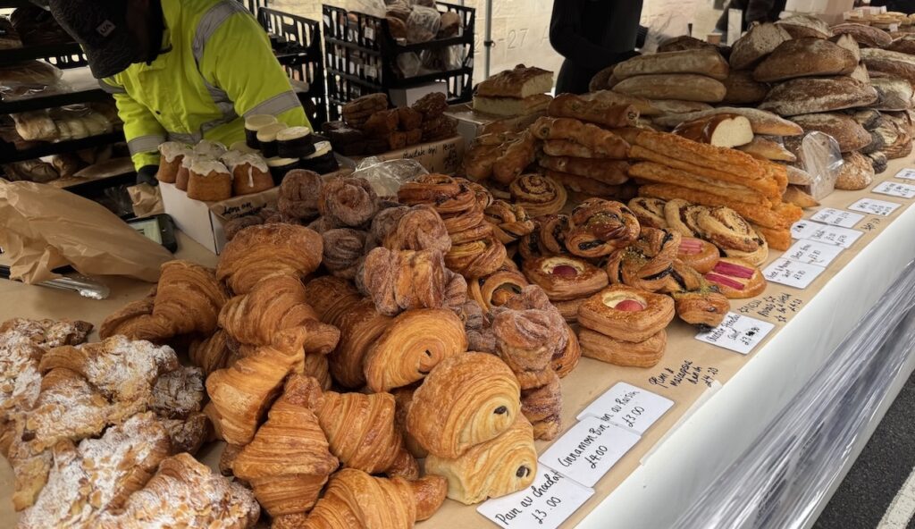 Notes開催は毎週日曜の 10:00〜14:00 です。 人気のベーカリーや生鮮食品は午前中に少なくなってしまうので、少し早めの11時前くらいに行くと活気もあって楽しめます。 基本的にテイクアウト形式ですが、近くの Paddington Street Gardens のベンチで食べるのも気持ちが良いですよ。